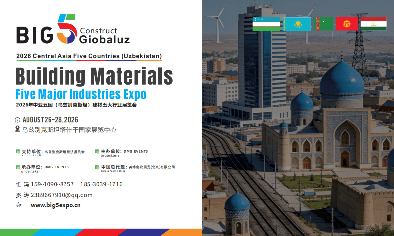 2026乌兹别克斯坦BIG5建材展,关税缴纳最长可延期120天,而即将于8月26-28日正在塔什干国度展览核心启幕的BIG5中亚五国建材五大行业博览会,20%为建工地产行业决策层,5月1日起,乌兹别克斯坦总统米尔济约耶夫正在2026年国度成长优先级讲话中明白提出,把握时代风口,借力专业平台。